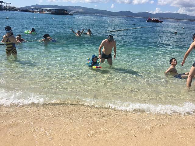 前一天我就订了去蜈支洲岛的票。(蜈支洲岛真的很晒很晒,紫外线真的超强,防晒、帽子、墨镜、遮阳伞一样不能不带!)每天太阳早早就升起了,虽然是20楼但是可以清楚的听到船鸣笛的声音,申爸每天一起床就要在躺椅上摇摇,完全不用担心他睡懒觉,申申也很喜欢美景,也是早早就起床了,两个妈妈早早的起来弄了点饭,吃了我们就出发啦,滴滴快车,附近好多车,两个人抢单,还有到电梯口电话就打来了,说在楼下等。我以为司机师傅是走高速,结果是在乡村穿过去的,一路上的风景甚美,都是没有见过的水果树,漫山遍野也不知道这些到底是什么水果,问司机师傅,他说他是东北的,他也不知道,(来到三亚好多都是东北人,路上走的,卖水果的,卖药的,饭店都是东北人开的,不愧是海南东北市啊)36.7公里,45分钟,100元。去了售票处人真的蛮多,但是我们网上购票,网上会告诉你在哪个窗口取票,取票的人相对少一些,这时得让申爸他们去排队坐船,等他排到了我的票也取出来了,合理利用时间,坐20分钟船就到蜈支洲岛啦,坐船的时候可以看窗外的海水是那种绿色,到了岸上看海底,看得可清楚了,可见海水真的很清澈啊!到了岛上就能看到环岛游的缆车,但是申爸急于去海边玩耍,我们想一会再去电瓶车的地方,我们娘三都没有带泳衣,不过真的很明智,太阳超级晒,就申爸和申申换了泳衣,我们就打着伞在海边坐着照相,也挺美,游完泳大家就要找吃的地方,我们的路线就这么错了,我们跑了很远找到了吃的地方,没想到电瓶车环岛游就是在这里停车,亲们一定要看完大海去坐电瓶车环岛,他是一个点一个点的停,你不下车他就会把你带入目的地,坐到电瓶车上就可以去那个夏季码头风味餐厅吃饭,不需要走很多路,我们走了好久到风味餐厅,吃完以为可以坐电瓶车,可是电瓶车必须是在起点买票才可以在这上车的,所以我们吃了饭是走到码头的,徒步看得风景,特别累,逛得还不是很全,所以成妈夏妈一定要记住啊,游完泳就到电瓶车那买票上车环岛去夏季码头风味餐厅,有个海鲜自助是可以团购的,原价98,现价68,二楼的饭也是人均70左右的,我们在二楼吃的,申爸一个人在楼下吃得海鲜,吃完饭我们就回,本来说坐环岛游,后来觉得已经走路环岛了,我们就回了,下午2点多就回了,本来安排的去免税店,实在是没有力气了,就想过几天去海棠湾专门逛吧,我们又叫的滴滴快车回了,回来后4点左右,我们又午休啦,妈妈又是熬米汤炒了几个菜,晚上我们又去海边散步,申申在海边玩沙子,发现有渔民撒网捕鱼,很有趣,我们看到了很多小螃蟹,晚上回来就冲澡睡觉啦@