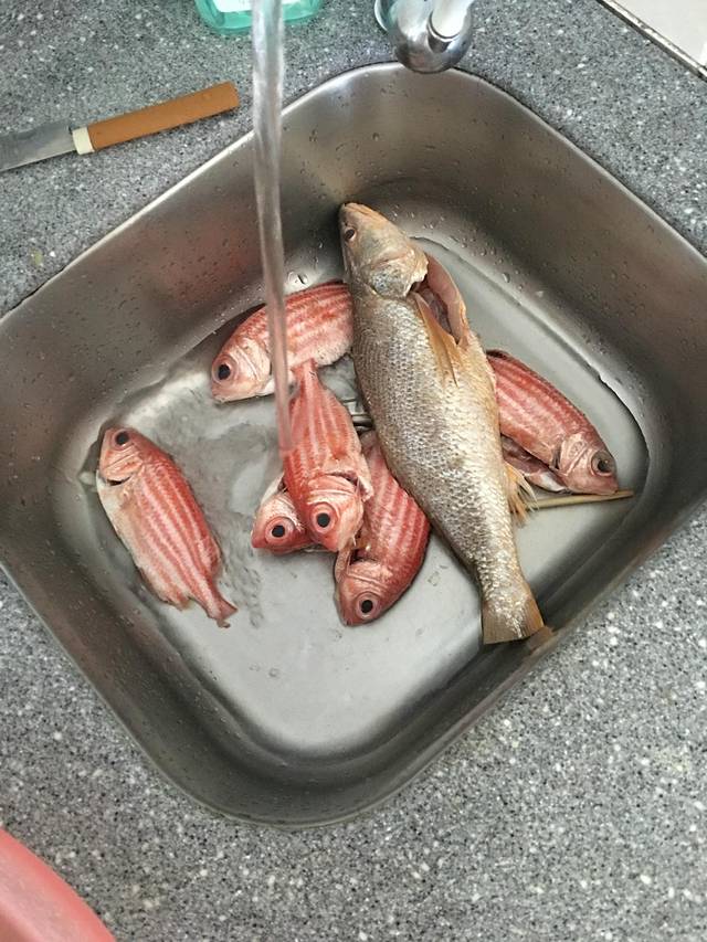 本来今天去呀喏达玩,俩妈说不去了,要在家做海鲜大餐,两人早早的去市场买菜,好家伙,买的真不少,大花螃蟹,石斑鱼,灯笼鱼,我们就在家休息了一天,哪也没有去!好好享受海风海景吧!