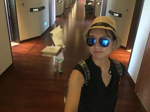 睡到自然醒,申宝起来就坐阳台上欣赏美景,两位妈妈去酒店逛,给我们打电话去吃早餐,我们赶紧起来去吃早餐,超级丰盛的早餐,老公吃了好多,估计在里面呆了一个多小时,美死了,就是没有留图片,光顾吃了,吃完又去逛逛,到了儿童玩的地方,我和申申在那待了好久,玩了会沙子,有海盗的衣服玩了会,申申不回房间,愣是抱回去哭的不行,于是就把浴室的温泉打开,他在里面看动画片,泡温泉,我在外面收拾东西,12点左右收拾完后,退房,酒店有免费的车去免税店,免税店也有车来接客人,我们不想等,就打的去免税店,去了先存箱子,A区询问处就有存箱子的填单,这下开逛,俩妈买了按摩的东西,卖完吃饭,B区楼顶是吃饭的地方,记住免税店整点有回市区或者你要去的地方,我们就坐大巴车回市区,到鹿回头广场下,打的回老郭家,回去休息,妈妈们又做饭啦!