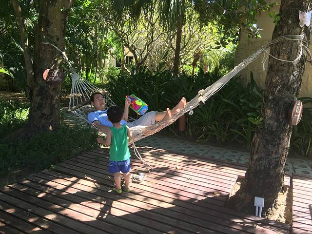 由于我娘睡眠不好,所以住宿必须过关,我还是选择公寓式酒店了,三亚湾的老郭家,家庭酒店可做饭,而且活动区域大,宽敞,没有酒店那些潮味道,在携程上看到评价最好的老郭家,看了好多评论,最后定夺五天都在他家住,去了果然没有让我们失望,超级干净,而且卧室,客厅开门就是大海,阳台上还有躺椅,美了个美啊!沐浴露、洗头膏都是多芬的,锅碗瓢盆样样俱全啊!家里超级整洁!100个赞!离海超近,过了马路就是大海,每晚我们都会听海风光脚去踩沙滩,楼下就是超市,什么都有,对面有个菜市场,菜和海鲜新鲜又便宜,妈妈说比临汾的便宜多了,妈妈们超级满意这个公寓。第二个酒店选的是亚龙湾仙人掌酒店当时看评论说里面的儿童泳池很赞,去了,确实不错,我选的高级山景房,住的地方超级潮,房间很闷,很不舒服,但游泳还不错,儿童泳池也不错,酒店里面的花园不大,吃饭超贵,早餐也不好,一个鱼香肉丝78元啊!而且离海远,但坐电瓶车去,坐电瓶车也挺美,蛮方便。第三个酒店海棠湾9号,一到酒店妈妈就i说这个酒店好气派,当时看上这个酒店个风格,很是喜欢,海棠湾的酒店很多,风格也很多,价钱真的也很贵,但是在酒店玩一天就觉得挺值的,和跑景点一样,9号的早餐也很赞的!9号游泳休息的地方很赞,基本可以说360度无死角的美!海滩就在酒店下面,很近,