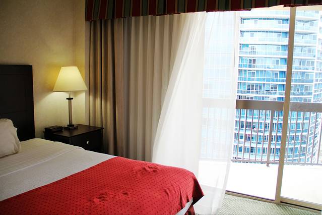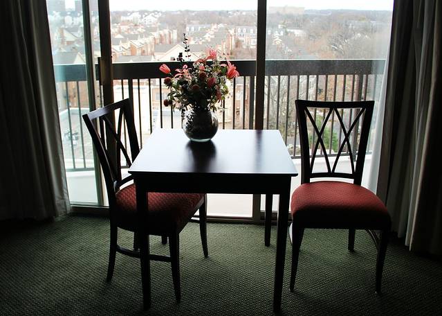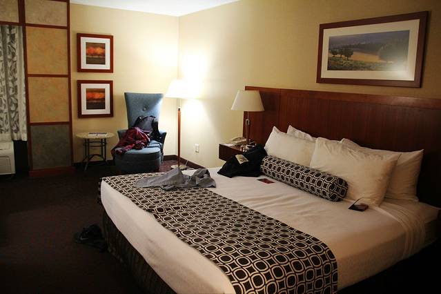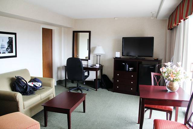 这家酒店好太多。因为上个月升级到了IHG白金卡,可以让我们免费升级到suite。可惜房间位置不好。酒店外面有一条河,如果是面对那边风景应该更好。
