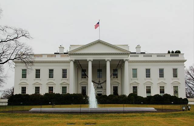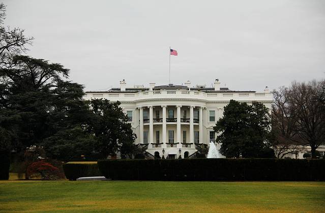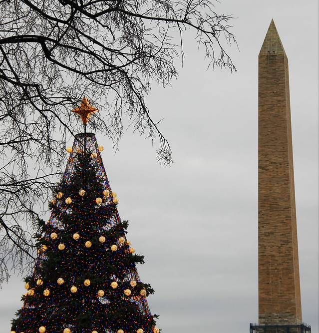 雨中的圣诞给人更多的是一种清冷的感觉。在灰暗天空的背景下,白宫显得毫无生气。