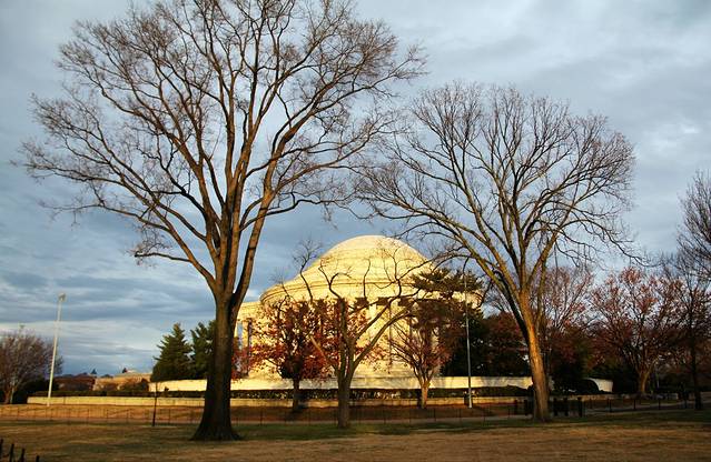 周围的纪念堂实在太多了。我们随便去了一个。天气稍微好了一点,在杰弗逊纪念堂外面意外碰到一只小狐狸。第一次在室外碰到狐狸,不是特别怕人,突然就萌生养只狐狸的念头~ 一位游客的狗见了狐狸立刻狂吠,狐狸吓得跑远了,跑远之后还不忘停下来看着狗被主人呵斥的样子。