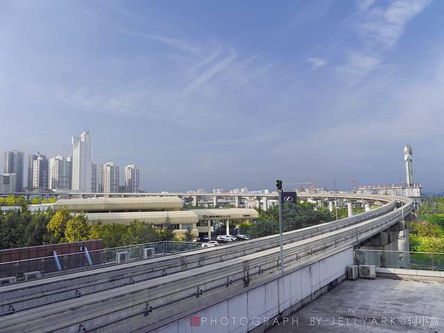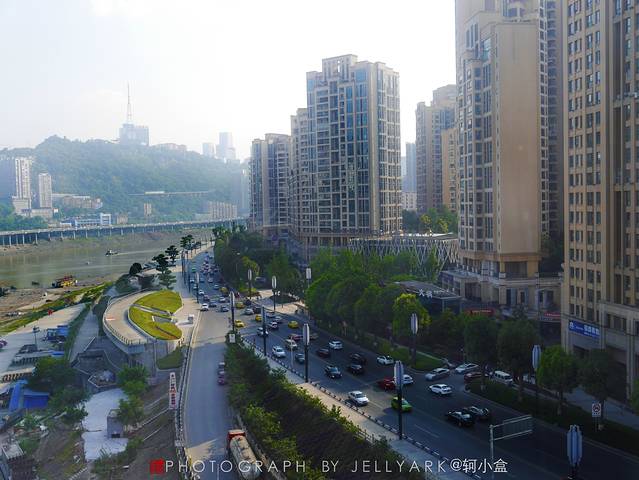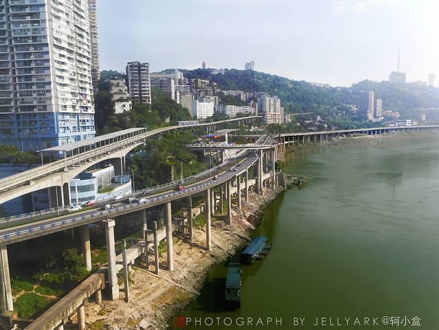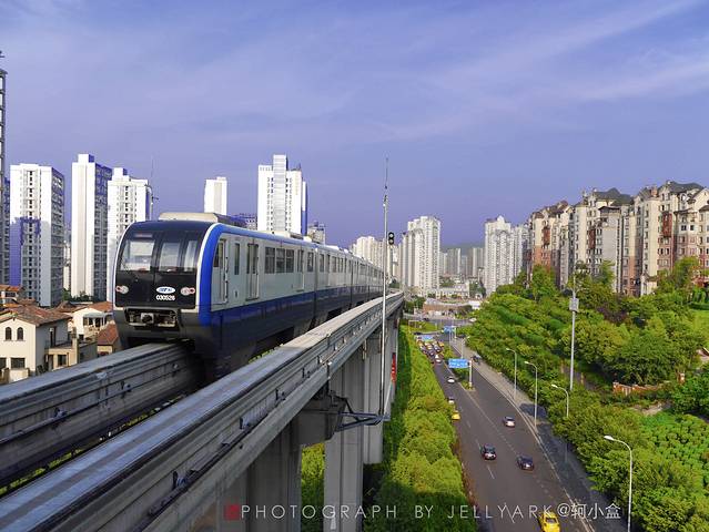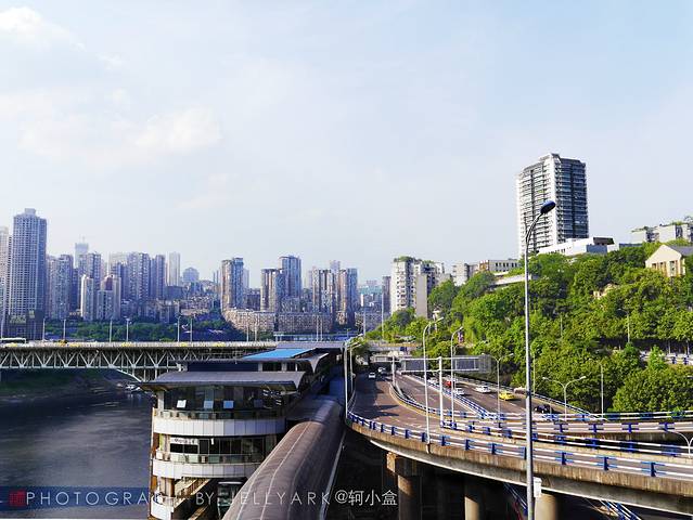而且山城的地铁是轻轨,搭乘轻轨的特点是会有许多站台是高架站台,而那些高架台往往会是不错的观景站台。