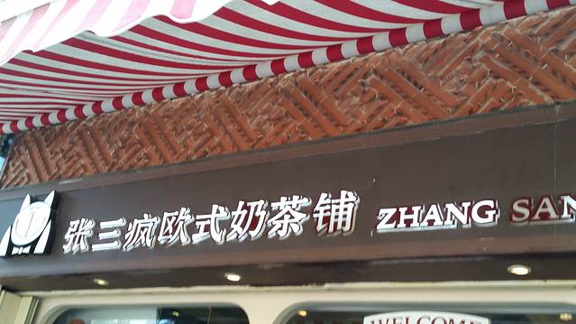 这就是张三疯欧式奶茶铺了,奶茶味道说不上特别好,但既然它这么出名,还是得去尝一下