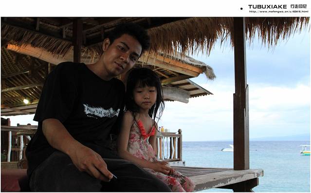 My Gili Cottages很舒服的环境,关键是价格算便宜,叫老板帮我们在花园里拉了两条绳子用来晒衣服,一会儿,花园里挂满了我们晾晒衣物,而这一刻一禾闲着没事,和老板的女儿玩在了一起,两人年龄相差不多,从院子里玩到屋里,我们教她写中文,她特别好学,她名字叫姻旦,好象岛上很缺书本和纸张噢,姻旦特别喜欢一禾手里的小本本,我见意一禾把小本本送给姻旦作为纪念,一禾很大方的把小本本送给了姻旦,