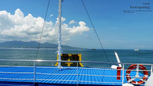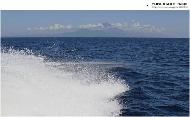 沿着船屁股的狭小边上的梯子,事先和小一禾解说怎么上,一定要小心,因为船在不停晃动和上下跳跃,手要抓紧,边上掉下去可是世界上最深的大海,远处还可以望见巴厘岛的阿贡火山屹立在云中。