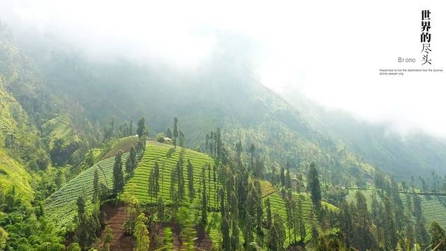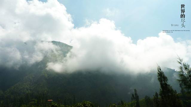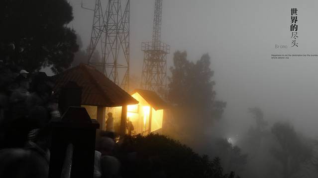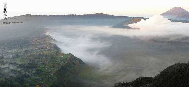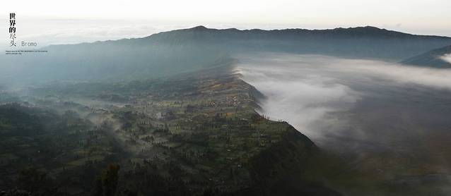 瞬间,对就是瞬间,迷雾一下子全开了,布罗莫火山和Cerama Lawang小镇就象只穿一件裤衩的男人一下子呈现在我们面前,壮观