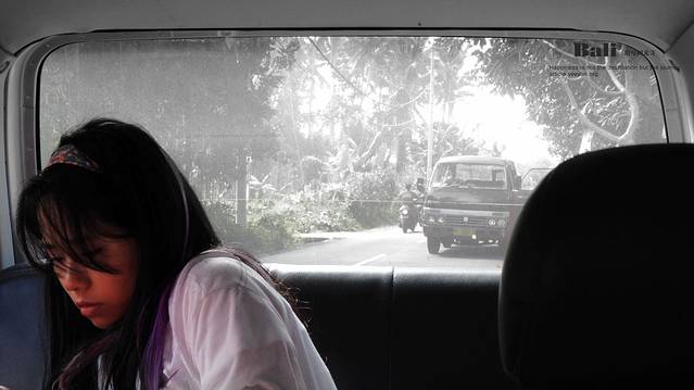 Cerama Lawang小镇下山到庞越的agency office的路,路边植被茂密.山顶上还有雾噢,有点累了,熬一下,等到换了车就好好在车上睡.
