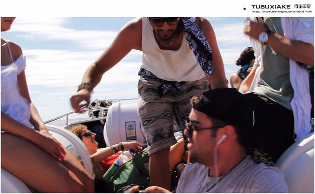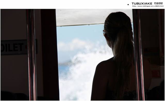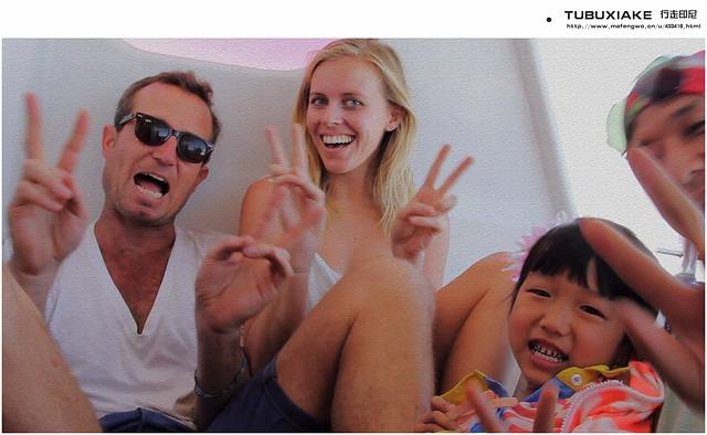 我们上船顶那是经过里一层外一层的防晒霜擦好,媳妇批准才上来的,因为媳妇知道,在这样的船上能不晕船最好的办法就是疯一样的玩,比如上船顶狂吼