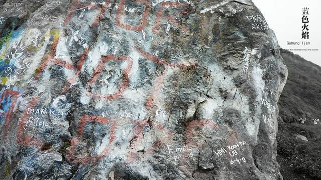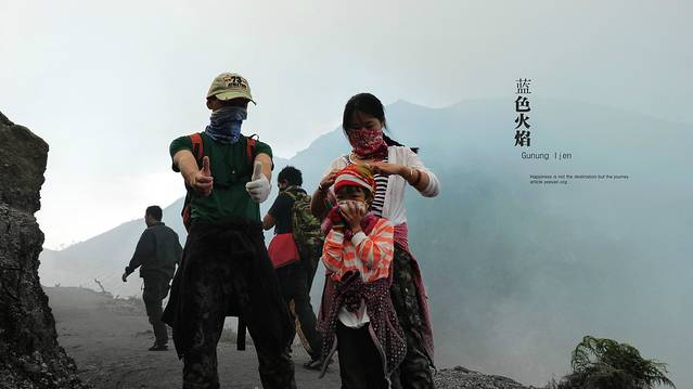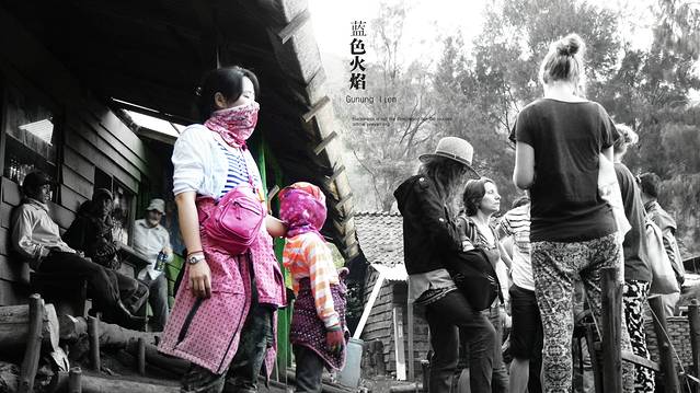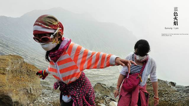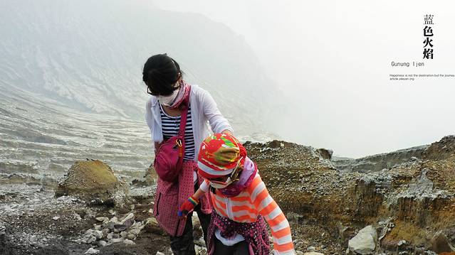 为了来这里,特地准备的衣装,列如一禾的一身羽绒服走完就可以扔了,我和媳妇的鞋子,我的鞋子脚底能进火山灰啦,这次穿玩后就扔在了吉打邦 。媳妇的鞋子扔在了乌布Campuan Ridge线的山脊上,还有接下去宜珍火山准备了防毒口罩,戴完后送给了挑琉璜的矿工,在这布罗莫行走,用户外头巾就够了,布罗莫火山口喷出的浓烟我们远远的闻着就如同烟火般的味道,不刺鼻,只是在这里行走时而扬起的火山灰,和路过的人或马带起的火山灰,所以戴一条户外丝巾蒙着鼻子还是很适用的