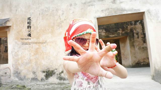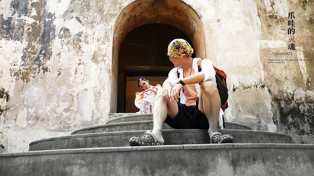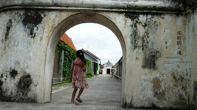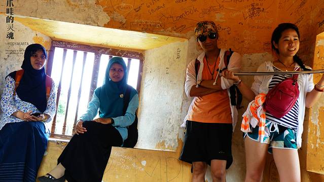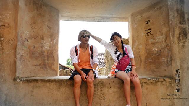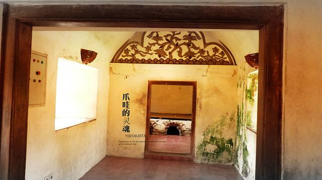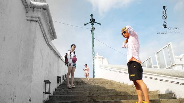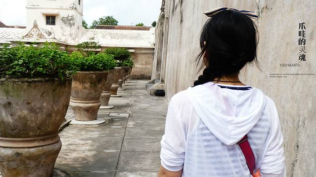 是来的早的原因吧,水宫参观的人很少,在水宫的阁楼上我们和两个印尼姑娘一起坐着休息并欣赏这座阁楼,我们只能简单几句很友好的沟通,她们有很强的意愿和我们交流,我们不能说太多,说太多就露屑儿了,就该说:“I do not know”了,于是叫一禾,在她们面前唱了一首歌给她们听,听的她们超开