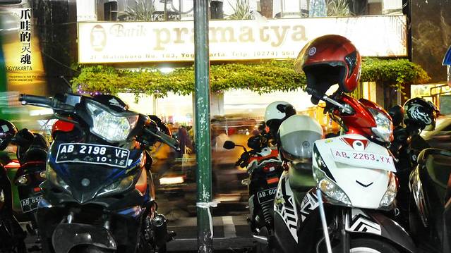 开着摩托车想找马里波罗大街,却迷失了方向,因为我们手机定位还没弄好,这让我们很不方便,问一位路边开车的大哥,二话没讲,叫我们跟着他和他的摩托,他开的真快,我们跟在他后头狂奔,好象电影里的街头赛车手,伴着路边的印尼歌曲,我们马力十足,耳边风声呼呼而过,到达马里波罗街,朝我们点了点头,他和他的摩托,风一般消失在夜色里,谢谢啦,印尼老哥。