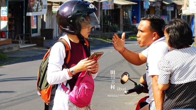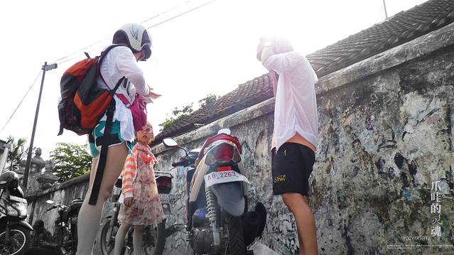 玩到哪儿算哪儿,但没有手机定位,我们注定还是又迷失了,最后只能一路问马里波罗大街怎么走,因为知道了马里波罗大街,我们就又可以找到回酒店的路了,手机定位直到我们骑行乌布时才弄好,一禾坐在摩托车中间睡着了