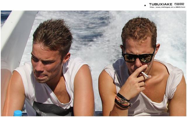 船顶的这两个哥们失恋了吗,心情不是很好噢。