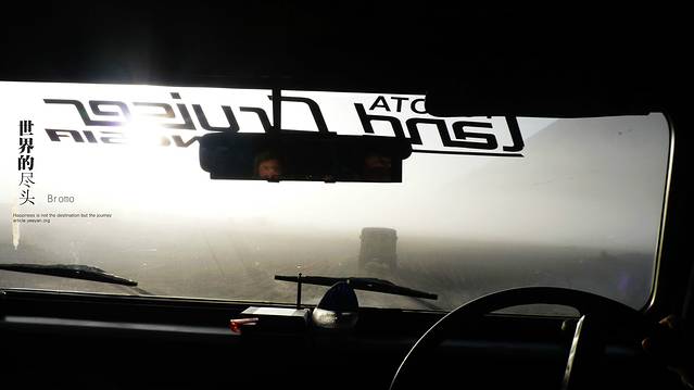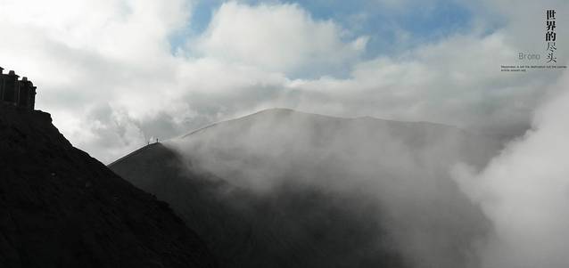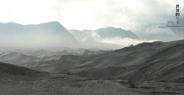 寒冷,干燥和寸草不生,阳光,迷雾还有如月球般的地面和火山灰扬起的尘土,让你分不清是雾还是灰,是浪漫还是污染。戴着关头巾,蒙着鼻子,吸气,呼气。空气里还有一点淡淡的烟火味,那是布罗莫火山喷发的浓烟。