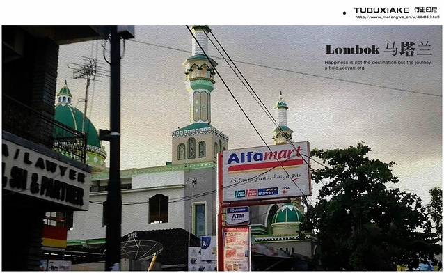 1个来小时的,骑骑停停,看风景,吃小吃,不已乐乎,我们开始进入马塔兰,马塔兰是印尼的西努沙登加拉省的首府,现在已逐渐成为了政治和经济中心。下面这是市里新建的穆斯林教堂,还在建,停好车,三人进去,被门口保安阻止了,他说还在建,不安全,马塔兰给我们印象好,是因为我们刚骑进市里时是一排古老的两边的老房,一下子让人进入了一个异域风情的小镇的感觉得,这感觉非常好。骑了半个马塔兰,骑骑停停,吃完了一袋蛇果,我们还不过隐,又买了一袋,现在家里闺女时常经过水果摊,还在说有蛇果吗,呵呵,在一个草地上,坐着学生,情侣,闺密,吃着沙爹,停好摩托车,我们也坐了下来,味道还行。