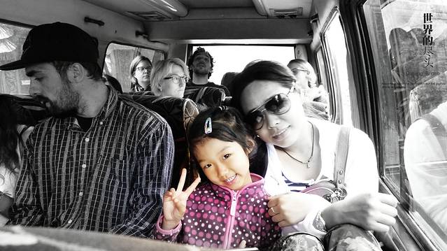 车来的有点迟,原来我们是最后5个人,娘儿俩挤在了大胡子帅锅的边上,没位置了,我挤在了最前面。