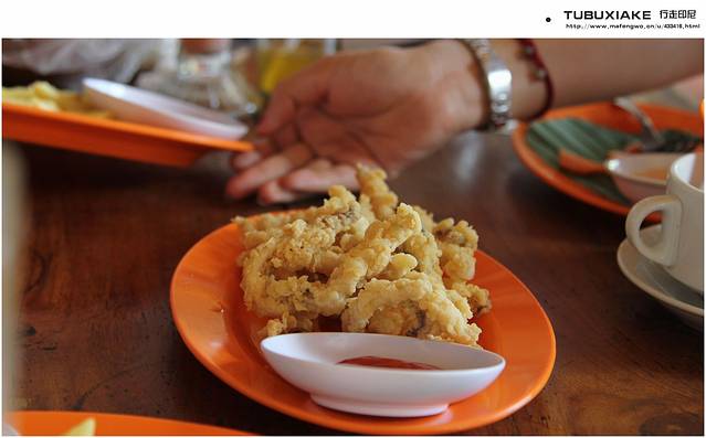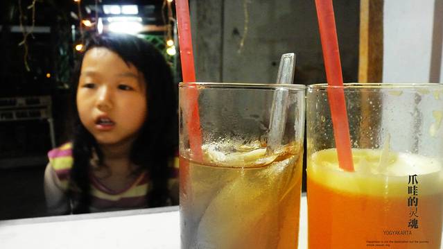 在酒店游泳池里游了泳,冲了澡,三人出来找吃的,就在酒店附近,我们找到了一家饭摊,媳妇用手势比划了半天,拿下了要吃的东西,凉凉爽爽喝着果汁和冰茶,在印尼吃东西,你一定要不要急,因为好慢,记得最后在米诺岛海边吃东西,我们足足等了1个多小时才上我们的两盘饭,不过他们真的很认真的在为我们做饭,味道好,量足,而且也能从饭里吃出他们的认真,而且还价格公道。