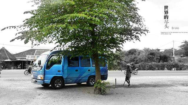 9点,车来了,一辆蓝色小巴,可坐十个人,里面已经坐了四,五个金发美女,不会吧,不会吧全是女生,哈哈哈,此行我是贾宝玉不成,轻轻的告诉媳妇,我有一点发自内心的开心,小巴车又绕了日惹一圈,接上了两帅哥,一美女,加上一禾,我们的蓝色小巴车整整十个人,7个美女,三个锅,本还以为就我一个,唉,想的太美了,我们出发了,进军布罗莫火山 ,日惹再见啦,爪哇岛上的明珠和灵魂。