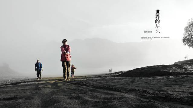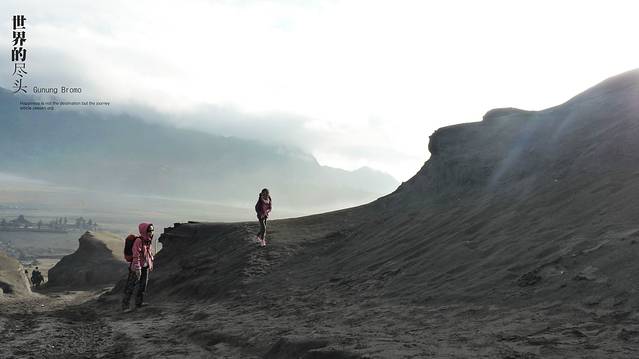 阳光完全战胜迷雾时,我们开始热了,三人在一个小火山灰堆上脱里面的爪绒,凌晨3点起来还是很冷的,但现在开始就越来越热了,布罗莫火山(Gunung Bromo)是腾格尔火山口中的一座活火山,快到火山口的脚下啦,在边上一眼望去,不愧为月球表面,世界尽头的称呼,火山灰黑黑的覆盖了这里的地面,2011年这里大爆发过一次,断背山后的居民都纷纷离开了,布罗莫火山当天喷出了高达600到800米高的浓烟和火山灰,以及高达200米的岩浆。
