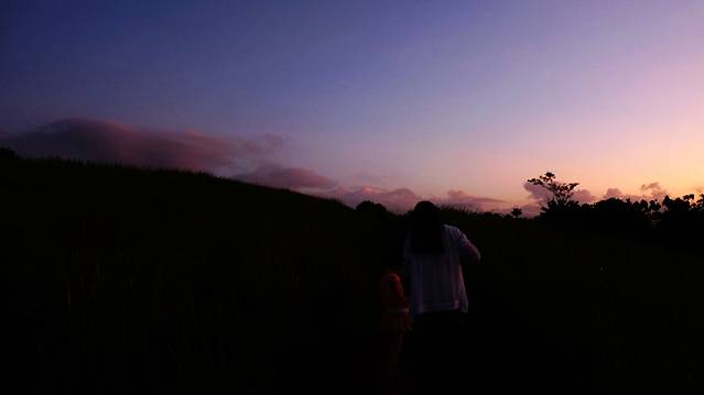 夕阳西下,我们开出马塔兰,一禾在摩托车上睡着了