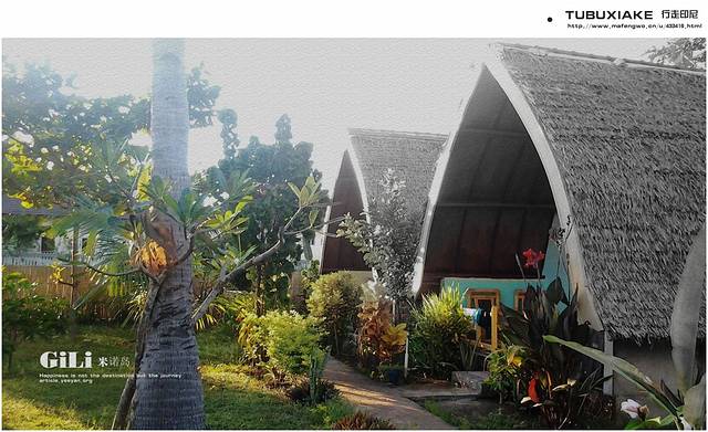 一个半小时的航行,我们到达鲁滨逊之称的MENO岛,我们住处的老板已在码头接我们,这让我们很意外,老板带着我们弯弯转转经过几条小路,小路基本上都是沙路,一会儿工夫到了My Gili Cottages (我的吉利别墅酒店)。