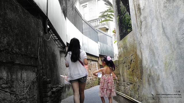 走出水宫后门,是一条很静,很有特色的小巷,不知为什么,我就是爱走小巷,小巷的居民自家的院子的种着各种花花草草,每户人家的院子都打理的浑然天成,小巷子边的墙上是一些涂鸦,小巷里有买印尼民族服装,也有一些画画的工作者开的一些工作室,