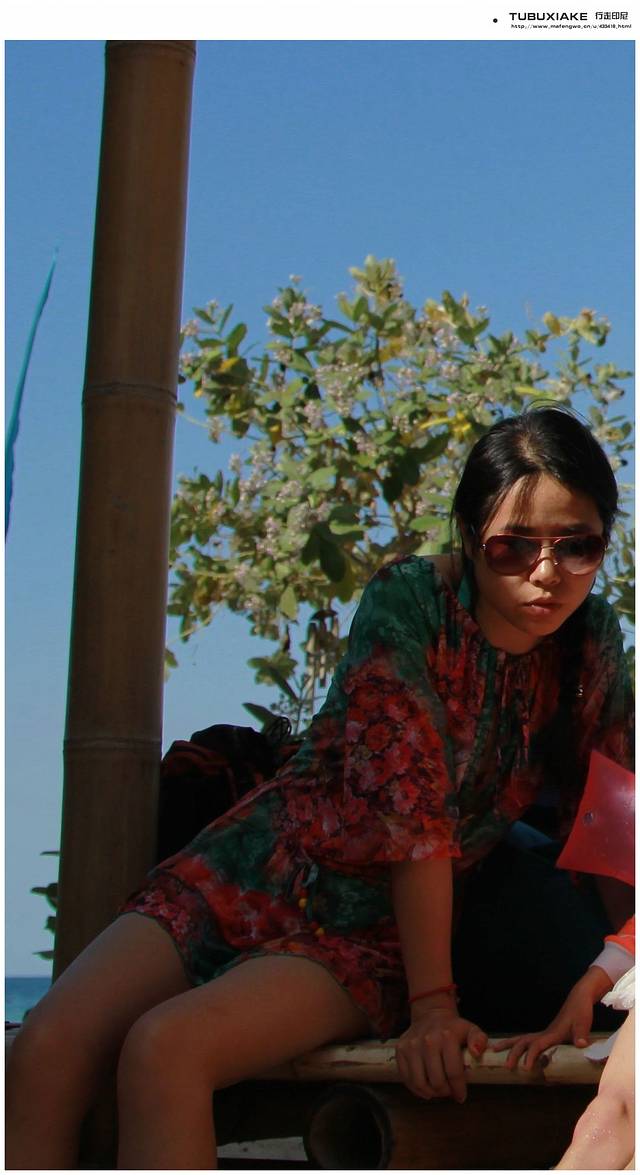 一禾由于那个巨浪,衣服全湿,虽然已晒干,但刚晒干的衣服,我怕穿起来容易中暑,所以只给她包了个丝巾象个连衣裙也挺好看的,她不习惯,最后只有穿着个防晒衣,露个小裤裤,这小丫头也不害臊。