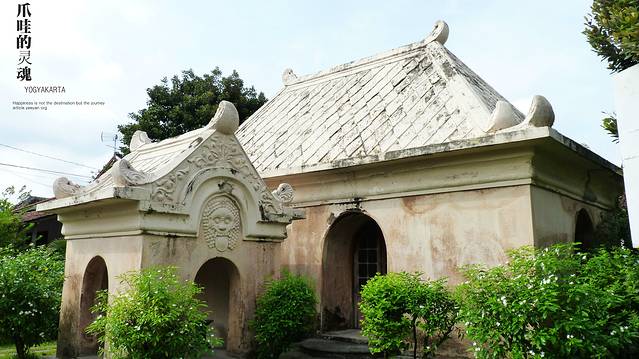 水宫位于日惹苏丹皇宫 西南方,是一座由水渠、池塘和宫殿组成的建筑群,曾经是宫殿的豪华娱乐公园、游泳池以及苏丹和他的随从出行用的水路。这座精心设计的休息寓所建于1758年至1765年,由一名葡萄牙建筑师设计修建的。据说苏丹王为了让这“快乐之园”成为永久的秘密,最终处死了这位葡萄牙建筑师。