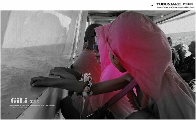 等候的时间,我们早学会了自娱自乐,等船的人不少,几个当地居民想和我们合影但又腼腆