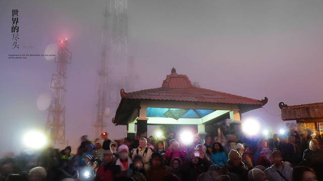 吉普绕着小山的山路环绕而上,停下车。我们步行而上,我们前面山路边上已停满吉普,哇哦,黑呼呼的三人点亮头灯行走,观景台这里还有喝茶喝咖啡的小馆噢,人这么多,昨晚上山怎么不见一辆车勒