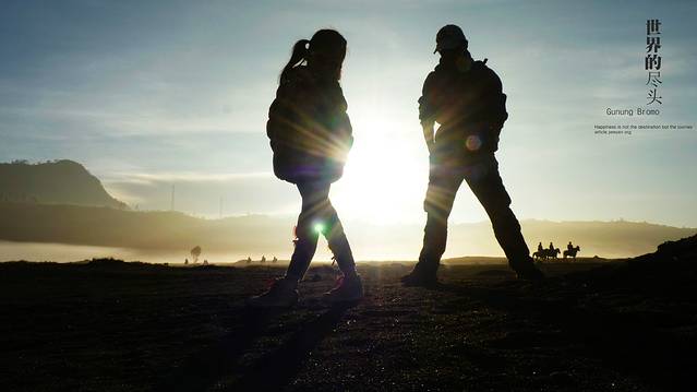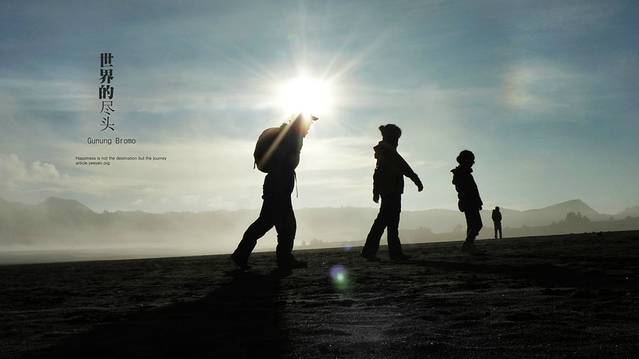 一本西方杂志的作者描述印度尼西亚东爪哇的布罗莫火山时,说它在日出的时候特有末日感觉。一片沙海的荒漠上,红色的火山山壁延伸在熔岩中,当地人说,如果能够去到火山口,甚至可以看到冒着蒸汽的岩浆从这座个头不大的火山上流出。呵,呵,现在我们就过去