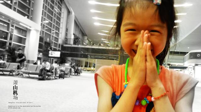一段时间的阴雨连绵,但行走日期如约而至,从家里出来是刚下完雨的阴天,三个多小时的动车我们到达杭州东站,做地铁到萧山,媳妇一同学在萧山,宝马接送,热情的款待我们戳了一顿,在这里说声,谢谢啦,5月10号22:00,我们在萧山机场,女儿熟练的玩着行李车,并很快结识了一位小朋友,玩在了一起。