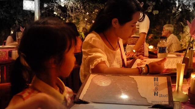朝着回MyGili Cottages(我的吉利别墅酒店)小路,走在小路上,我们还没吃晚餐呢,真的饿了,我们要找一个既便宜又要相当好吃又是我们喜欢的店吃东西,狗屎运,真还让我们找到了这些东西,我们还真叫不出名字来,都是媳妇到他们厨房点的,相当的好吃,老板娘有点黑但也相当的风情和韵味十足,时不时的传来一个微笑。在这店里感觉超好的。
