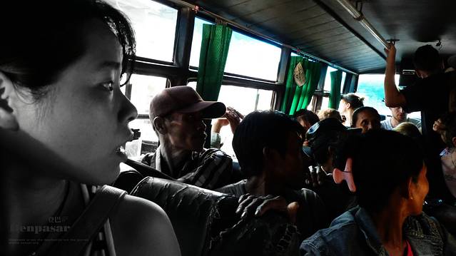 坐上公交,印尼人是不是很少见到中国人,我们有点觉得三人象稀有动物,由于我们订Hotel Rengganis (瑞格咖尼斯酒店)不在马里波罗大街,所以我们找酒店要比别人困难,坐了很久的小巴,当中还换了一辆,对了,这里的公交,只要你交了3K(1.7左右人民币),只要不出站,你就可以任意坐和转车,坐到出站为止,日惹这里的每一个公交站头都有一位工作人员负责买票和维持秩序,找到酒店不容易,公交车停在了离我们酒店最近的站头,但我们搞不清我们所处的方位,问了几个人好象也没能弄明白,烈日当空,三人背着重装在太阳底下行走,真有点受不了了,合计叫了辆客先死,谈价到10K,送我们去酒店。客先死这名取的顾名思义,客先死也就是人力三轮车,但他们的三轮车是乘客坐在前面,骑车的人在后面,所以万一撞车,乘客必先死,。