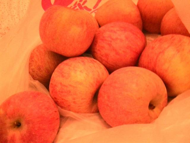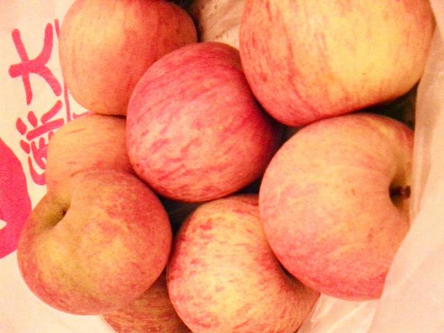许是吃了太多,为了便于消化,顺便清一清肠胃,果断买几个苹果。不愧是正宗的烟台苹果,个头大,特别脆,水分十足,一入口,汁水四溢,啧啧