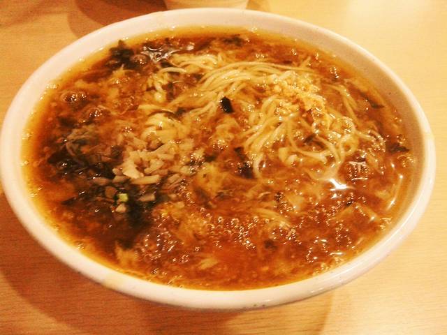 烟台近海,连面里都少不了海鲜味。第三站来蓬莱小面一坐,点上一碗海胆面,滑嫩q弹的面条,浓香的汤汁,幸福感十足