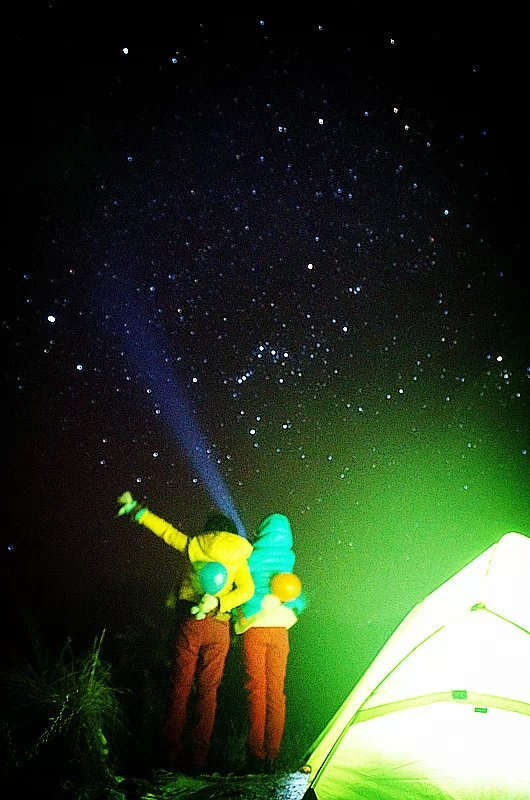这周去九峰山N只队伍,接近300人,露营的估计有100人左右,他们都早早的在山顶的房子内占了位置扎营,为了能在最佳位置拍摄到最漂亮的星空,我毅然决定在屋子背后的山脊空地扎营,四面的狂风差点没把我新买的帐篷吹骨折~