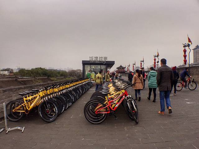 年卡只能在四个正门上城墙,有体力的可以选择骑自行车走个透,也可以学我们单纯上来吹吹风。