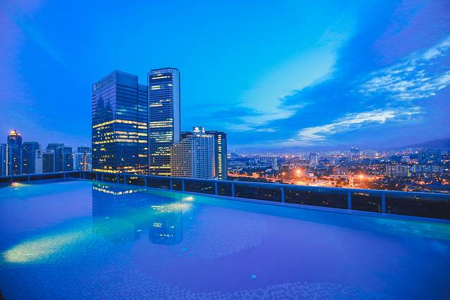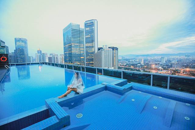 楼顶的有泳池和健身房,我和某二早上天还没亮就跑上来拍照片。
