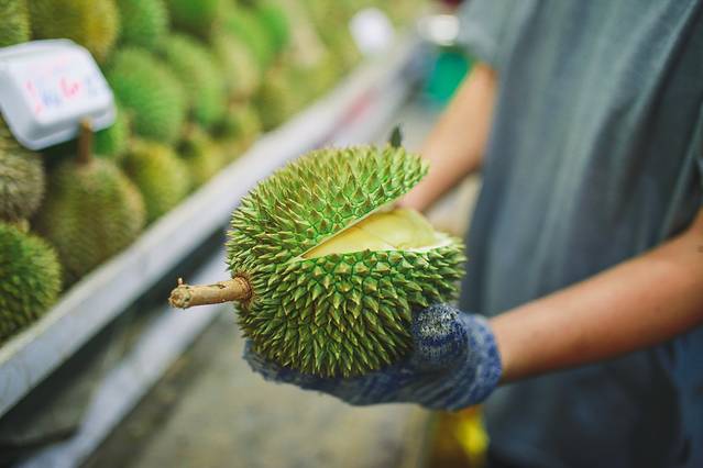 马来西亚真的满大街都是榴莲哦。不过这些路边的榴莲核比较大,味道很好~后来有马来西亚的朋友带我们去吃比较正宗的榴莲大排档,哪里的榴莲核就非常非常小,一口下去满满都是榴莲肉。