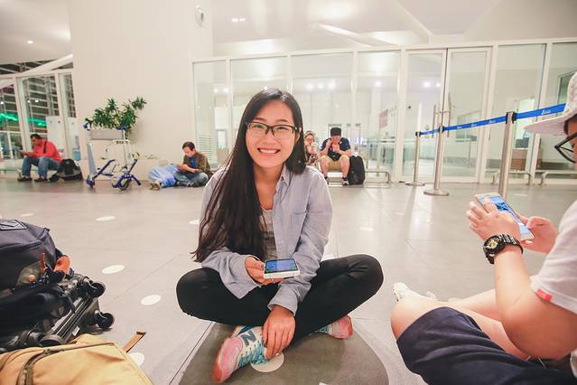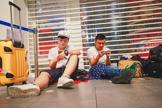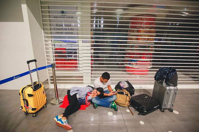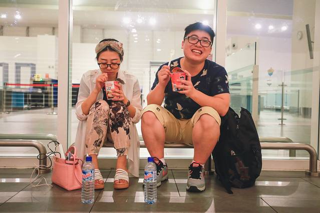 4个小时的飞行比较枯燥,而且也不知道那次航班为什么一直颠簸…很久很久,整个一飞机的人异常沉默,我一直紧紧的扣住我家二货的手。不过好在后来还是平稳…整个航班的人都舒了一口气。凌晨1点平安抵达吉隆坡机场,由于早上很早的飞机所以一行10人决定夜宿机场,说实话已经很多年没熬过夜的人来说,这种等待真的非常煎熬~不过好在人多,整个过程说说笑笑外加耍宝时间也过得飞快。在机场熬夜的人真不少,也有许多是和我们一样第二天一大早飞斗湖得,在机场的室外吸烟区和他们聊天,获取信息。