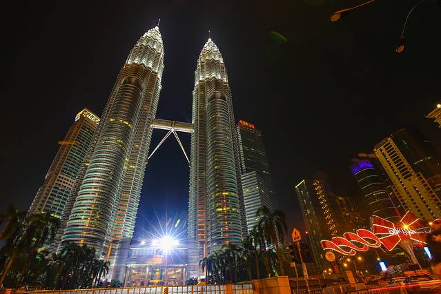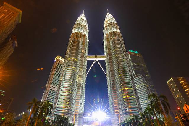 夜晚有灯光的双子塔才比较高大上,不想白天好似个钢铁大怪物。