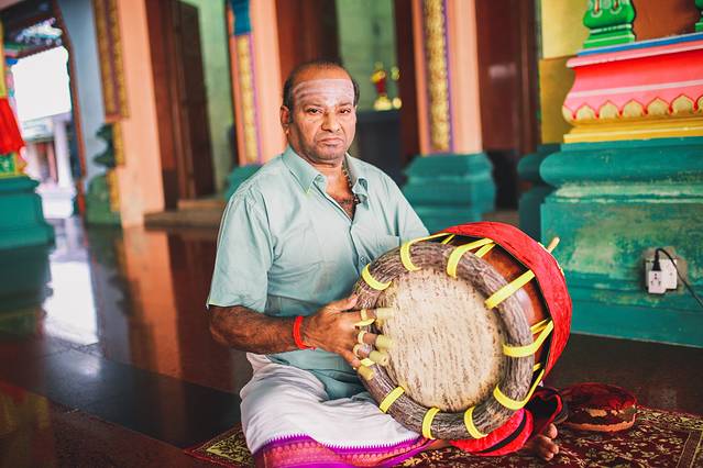 在庙里演奏的大叔,看起来很凶的样子,其实很和蔼的。