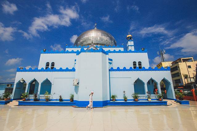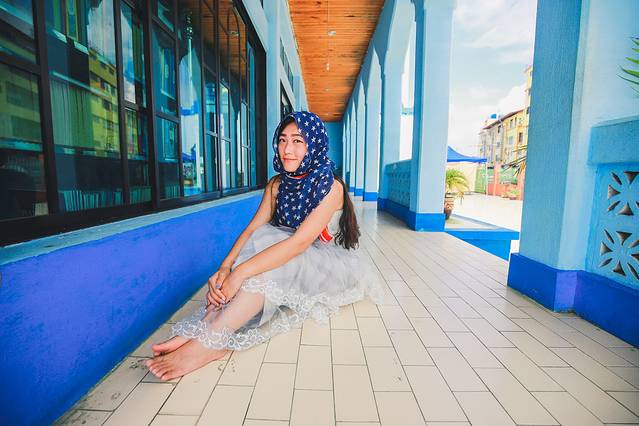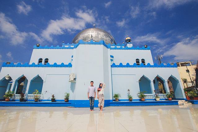 进入清真寺是不需要门票的,不过得得包头,不得超短裤或短裙的,和门口的老伯伯交流他们拿了一条大的布给我裹下身,我用围巾包好头,他们指着包好头的我说:“漂亮”,哈哈,询问清楚是否可以在里面拍照和注意事项。拍了几张觉得有点不伦不类,就放弃了。