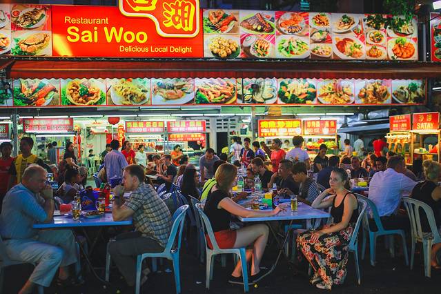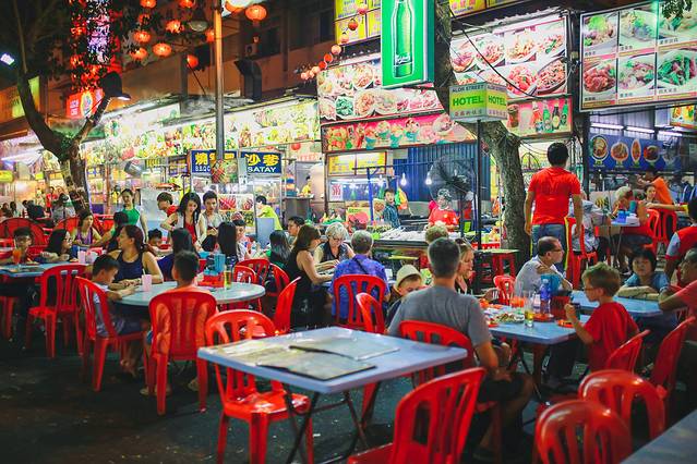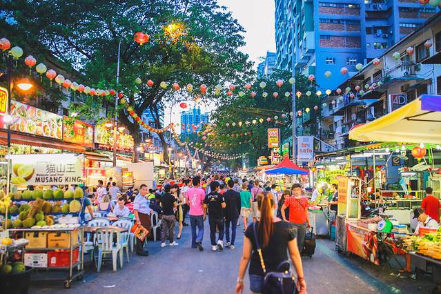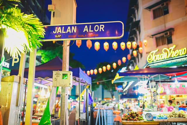 阿罗街位于武吉免登路及同善路之间,阿罗街是吉隆坡最著名的美食街,全部是清一色本地美食,美食单位超过1 00,售卖的食物种类有烧鸡翅、葡萄牙烧鱼、炒裸条、罗惹、沙爹、尤鱼蓊菜、猪肉粥、亚三肋沙、药材炖汤、海鲜、点心、肉骨茶等。一条街吃过去可以不重样的。