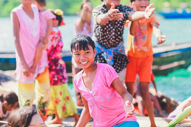 第一站我们去的原住民居住地,还没去的时候我抱着一些许的好奇,想知道海上的吉普赛人是如何生活,可是当我真的身处其中却无比的难过,觉得他们太穷~有同船的女孩子还为此流眼泪,在此我呼吁之后能去的所有朋友都带些食物或者是衣服,请带些蔬菜水果之类的,他们真的什么都没有。当我们的游船靠近居住地,所有的原住民会划着小船靠近我们,然后习惯性的伸出双手乞讨~当时的我座在船上心情比较压抑,不想动~就是那么看着他们,然而我什么都帮不了~有些小女孩会指着我头上扎头发的橡皮圈,她们需要!她们极其缺乏任何生活物资。