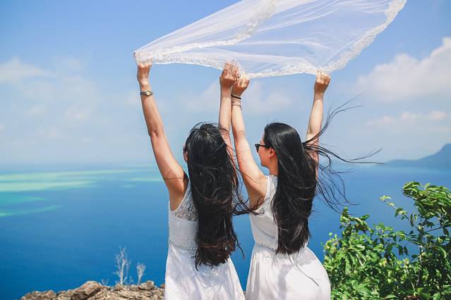 其实婚纱一直背着,只是在水里不好操作,终于派上了一点点的用处。