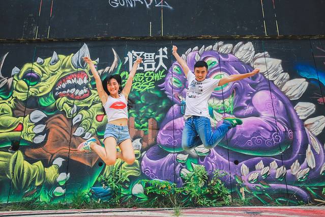 在火车站附近有一条全是涂鸦的墙,不过得爬下去~人很少,只有一些当地青年在~我们从楼梯爬下去拍了一些相片。